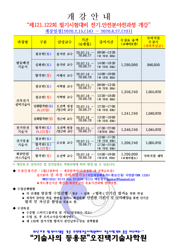 2020년 2월 개강안내/ 화공안전기술사,가스기술사,전기기술사