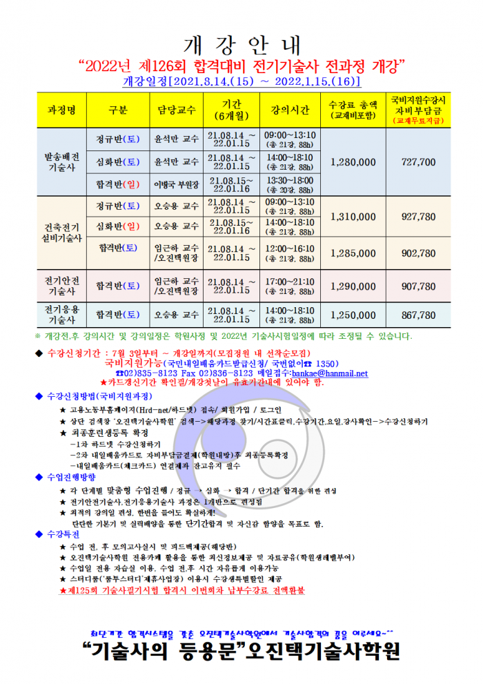 2021년 8월 전기기술사 전과정 개강안내/ 건축전기,발송배전,전기응용, 전기안전