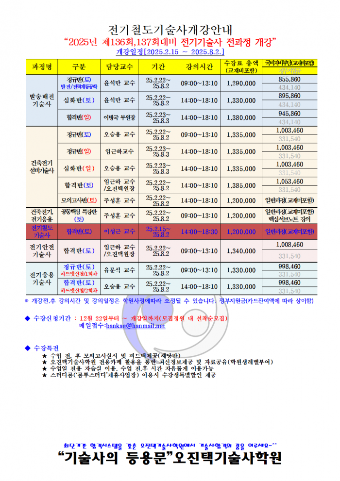 [개강]전기철도기술사 개강안내/2025년 2월15일