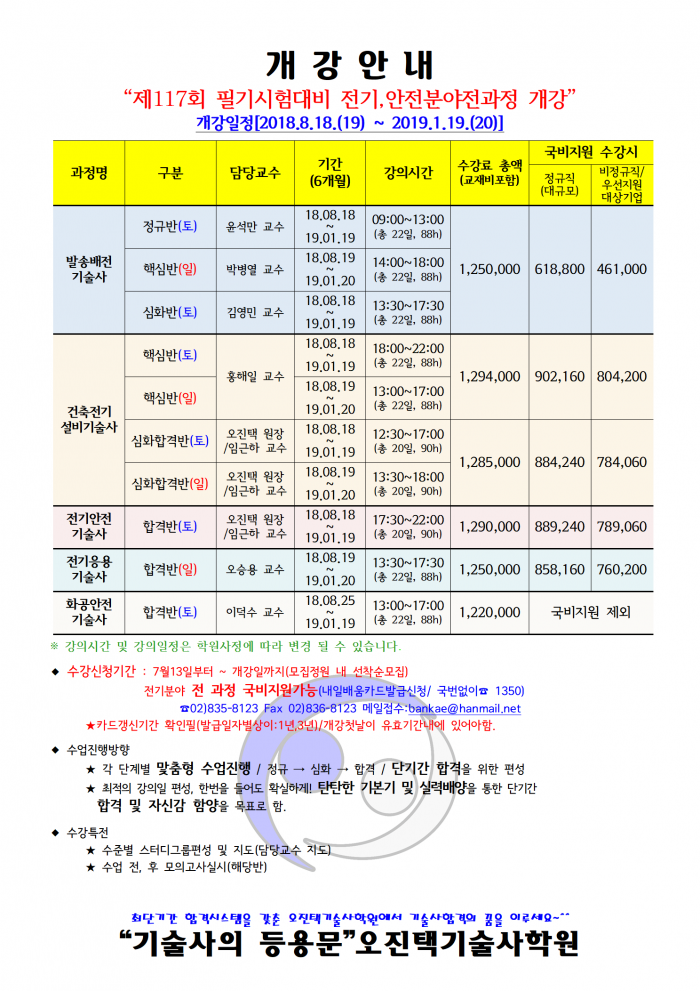 2018' 하반기 전기,안전분야 전 과정개강안내/ 8.18(토), 19(일)/ 국비지원과정(선착순접수중)