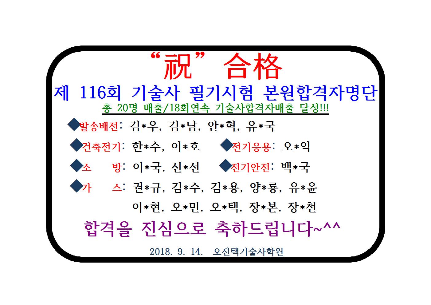 2018년 마지막 제116회 기술사필기시험 합격자명단입니다.