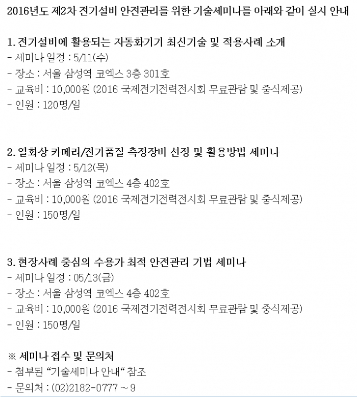 제2회 기술세미나 개최 소식(주최:한국전기기술인협회)