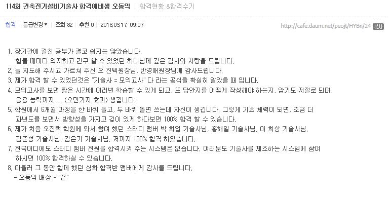[합격수기] 제114회 건축전기설비기술사 (오동익기술사)